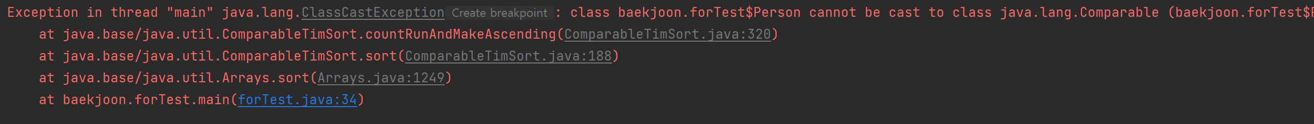 객체의 클래스에 Comparator를 상속받아 compare메소드를 구현하더라도 sort 메소드 사용 시 해당 메소드를 참조하여 정렬을 진행하지 못한다.