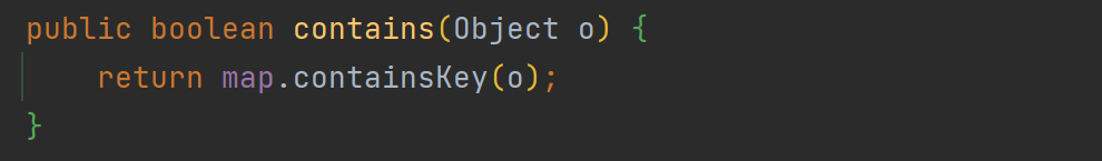 위에서 확인했듯이 내부적으로 HashMap으로 구현하기 때문에 HashMap의 containsKey 메소드를 호출한다.