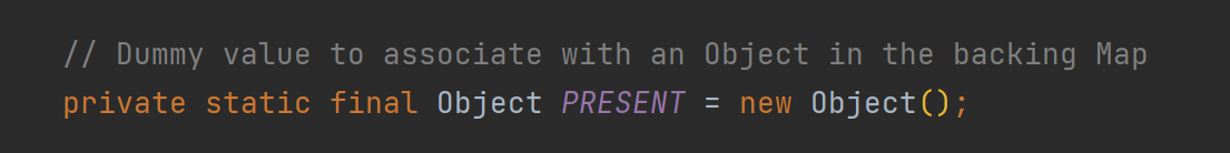 주석에 써있듯이 그냥 단순히 Set의 key값을 Map에 넣어주기 위해 쓰이는 더미 객체였다.